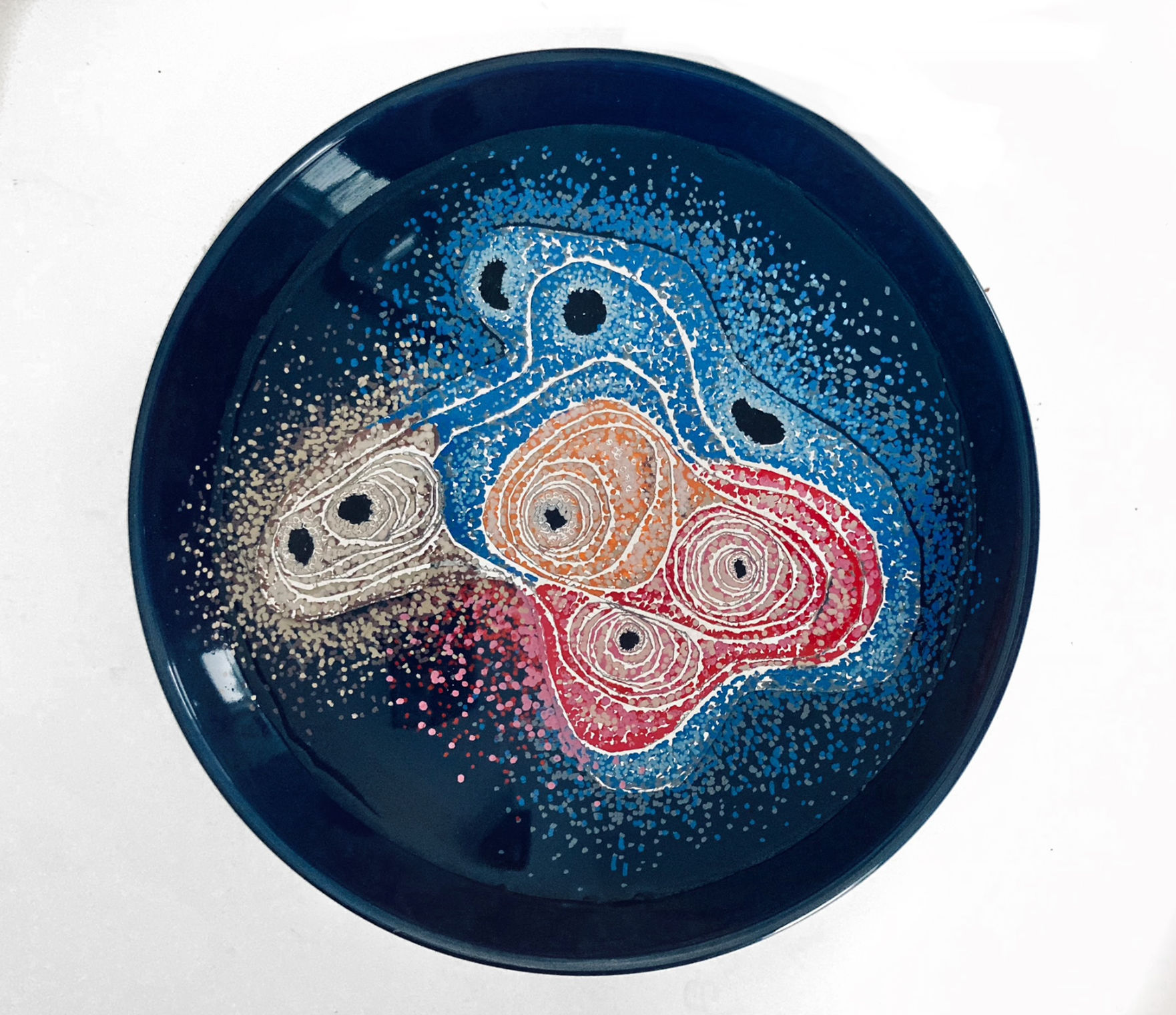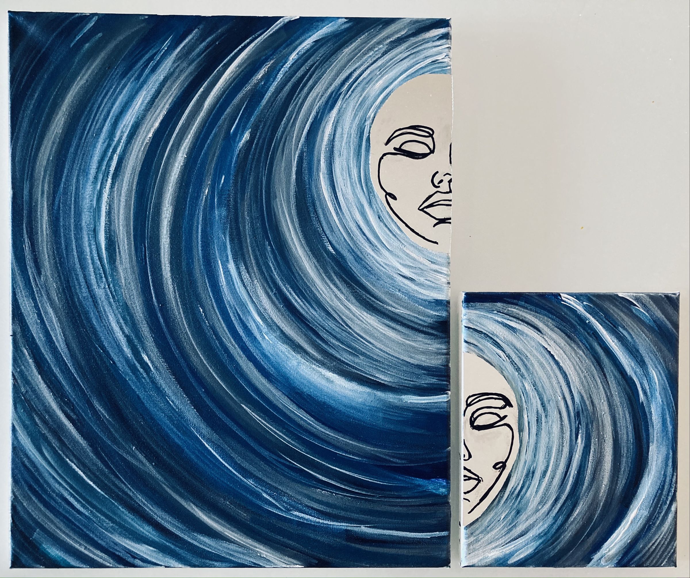 My current series aims to address the theme of capturing transience using both the interactive nature of some of the sculptural pieces, as well as the fluctuation of light interacting with reflection and representation of water. I worked primarily with sculptural materials such as plexiglass, acrylic mirroring, and ceramics while also incorporating more traditional artistic processes like painting. A lot of my processes are based on layering, both in layering paint and in building topographically layered structures. I very much enjoy seeing my work in motion, whether it is under changing lights or rippling water. In a time of flux -- with a volatile political climate, a pandemic, and undergoing a time of significant change in my personal life -- I capture shifts in my art to process not just the difficulty of it but also to find the beauty in a concept that often inspires fear.