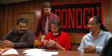 Seven seniors recently signed NCAA letters of intent to play sports in top-level college programs. Becky and Destiny signed for basketball, while Carly, Kira, Annie, Rachel and K.C. were recruited for lacrosse. Their parents and coaches participated in the signing ceremony on November 14.