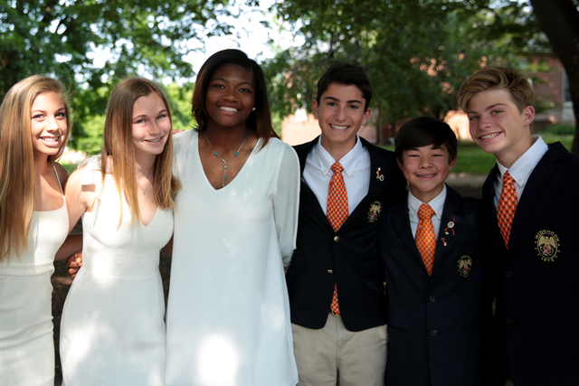 Eighth graders are always eager to move up to the Upper School, but before that journey can begin for the Class of 2023, their time in the Middle School had to come to an end with the Eighth Grade Closing Ceremony on Monday, June 3. Under blue skies, the eighth grade class processed from Tagart Chapel down to Childs Memorial Terrace where they were greeted by faculty, family and friends. On behalf of the sixth grade, Amanda Bavar, Joshua Brown, and Isabella Sodhi presented the eighth grade with gifts to show appreciation for all of their accomplishments. Student speakers Jack Gordon and Alexis Brown reminisced about the moments of joy and the countless opportunities they experienced during their time at McDonogh, and looked ahead to all the wonderful things Upper School has in store. Finally came the moment they had all been waiting for as Middle School Head Darren Ford presented each student with their certificate. Ford encouraged them to branch out and become their best possible selves during their Upper School journey. After the cermony, the eighth graders gathered with their family and friends by the statue of John McDonogh, just outside of Allan building, which will be their new home next year.