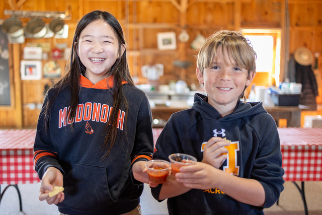 Fourth graders visited Roots Farm on Tuesday, March 24, for a hands-on look at where food really comes from. Rotating through four stations, they planted green peppers in the greenhouse, learned how bees pollinate flowers, spent time with the chickens and turkeys, and wrapped up with a taste of fresh salsa made from ingredients grown right on the farm.