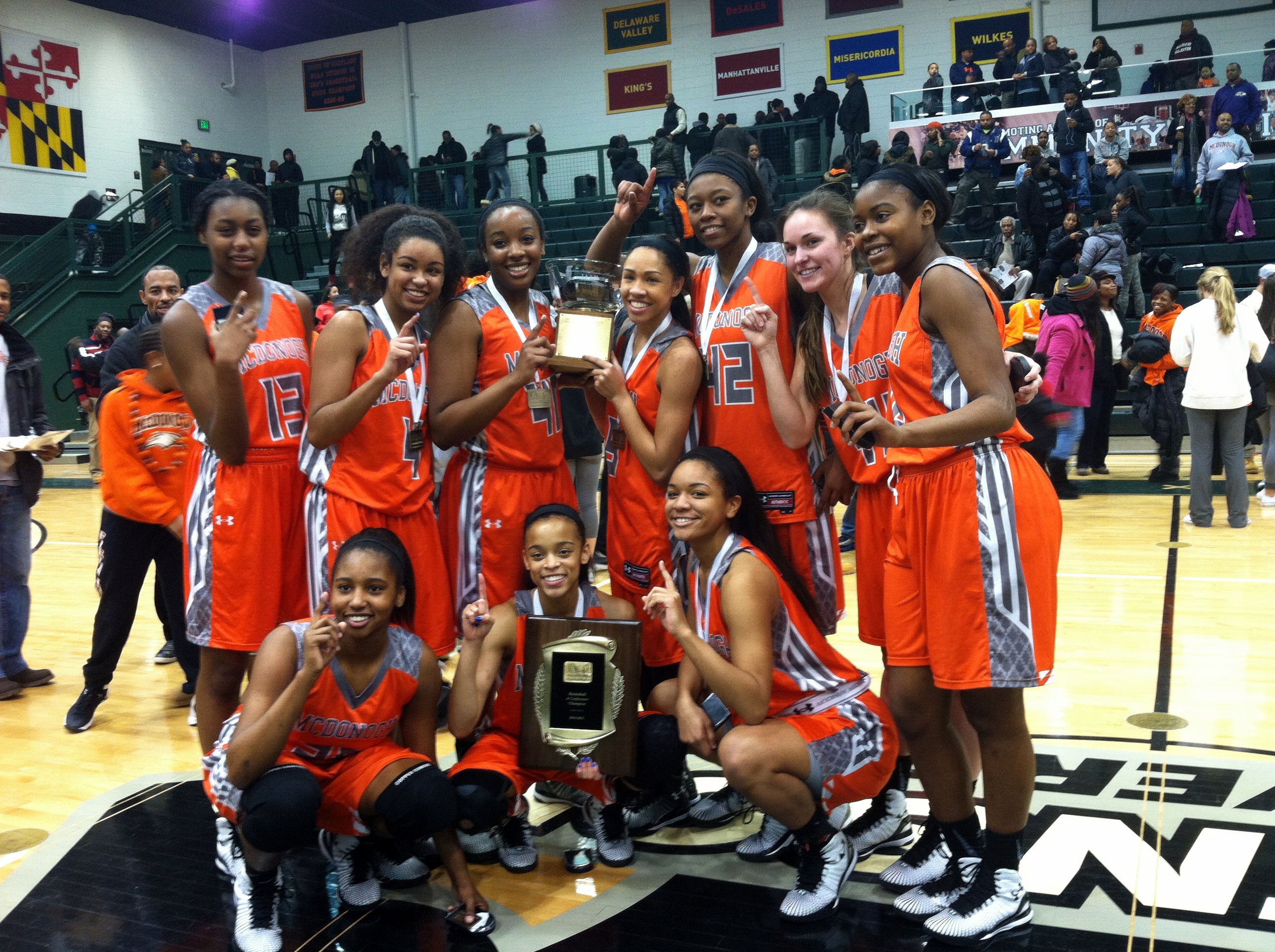 The girls varsity basketball team rallied to defeat Roland Park Country School (59-52) in overtime to claim the championship title on February 15 at Stevenson University. Ben F. '16 recapped the action in the following message to Upper School students.