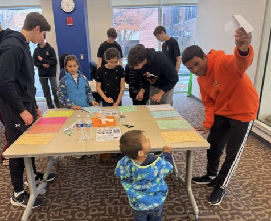 The next month, the Electric Slide team held the first of two Fun with STEM Saturdays at the Owings Mills branch of the Baltimore County Public Library, where they guided elementary school kids through four hands-on activities: paper helicopters, hoop gliders, catapults, and egg protectors for a plastic egg drop. “It was great to see so many kids interested in our STEM activities and to see the smiles on their faces after they’ve completed one of our projects,” says Team Captain Chandler Julianelle ’26, noting that more than 40 children attended their second event in January.